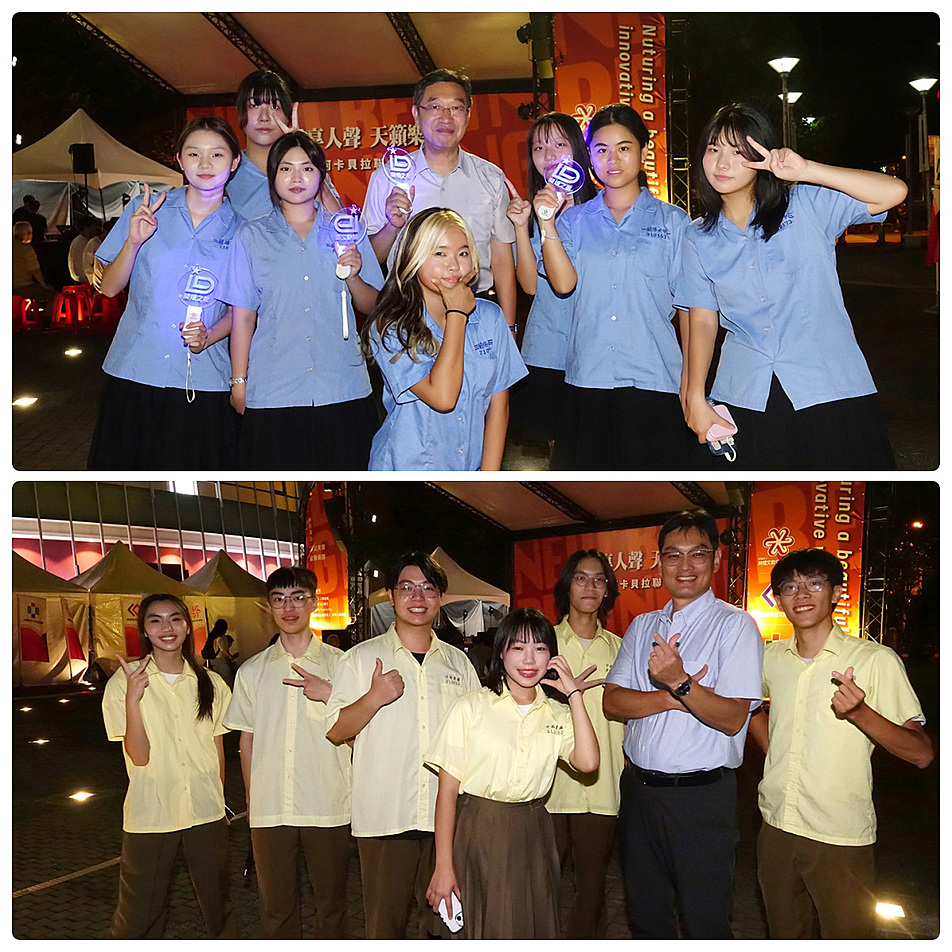 蘭陽女中陳銓校長(上圖中)、羅東高中張家豪校長(下圖右二)等各校師長們,也特地前來為學子初登場加油打氣。