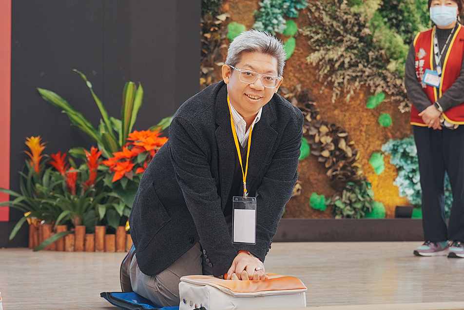 中保科技董事長林建涵於活動現場親自示範急救操作,展現企業高層對推動全民急救教育與韌性醫療的高度重視與投入。