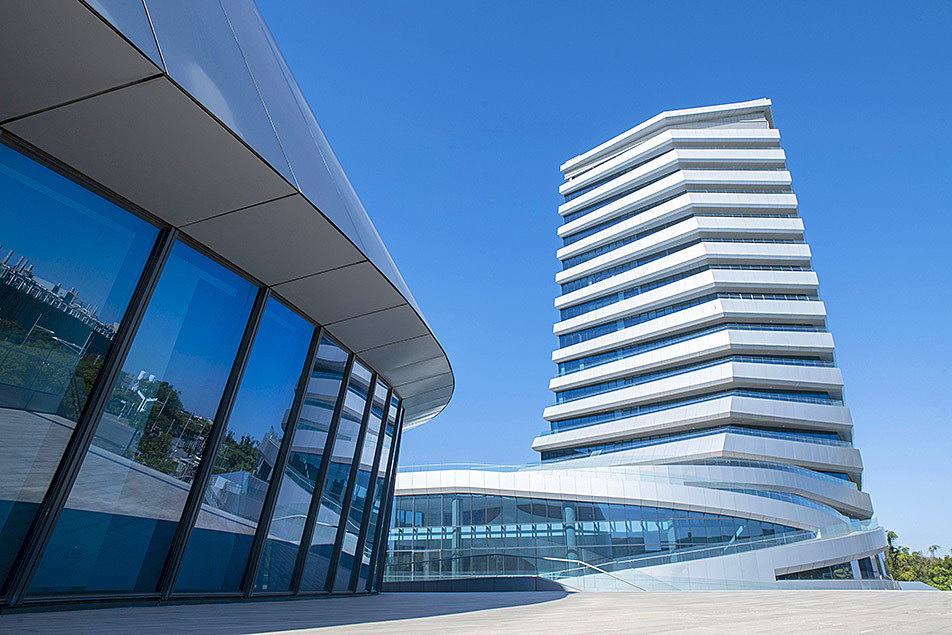 造型獨特的巨大機械全球營運總部,主體結構由國產建材實業台中廠獨家供應。