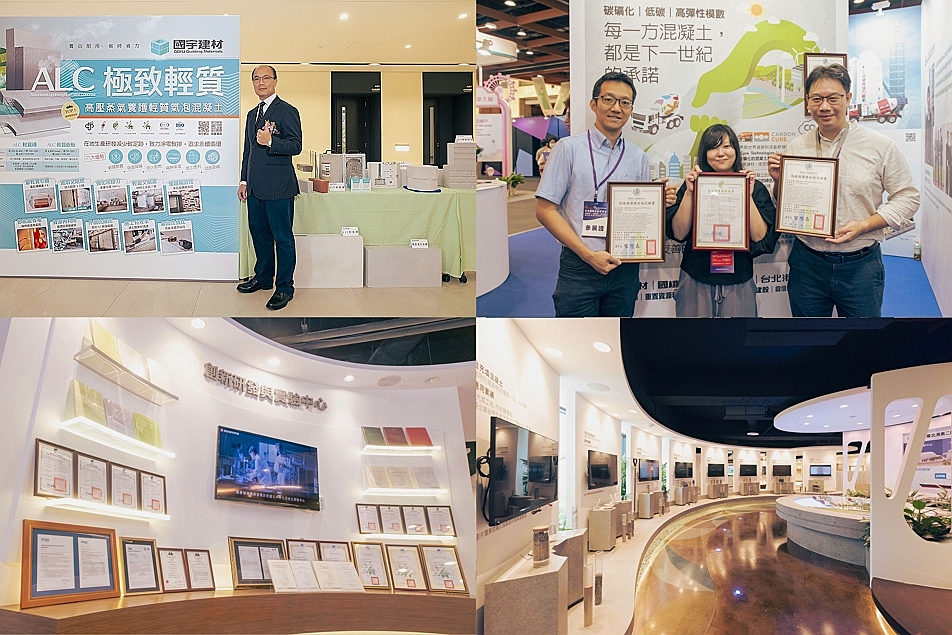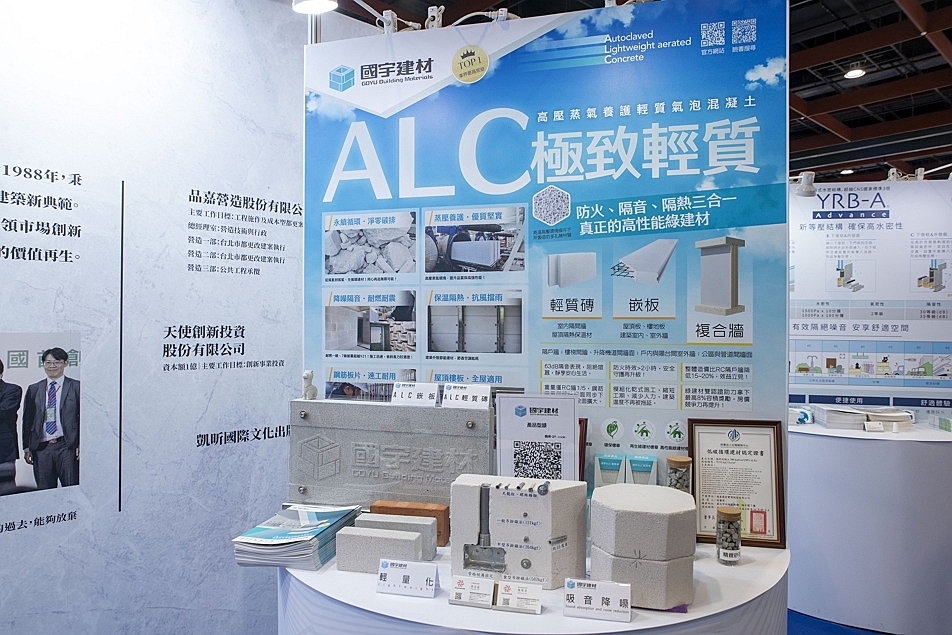 國產建材實業攜手旗下國宇建材參與台北國際金融博覽會的「都更主題館」,展出一系列獲得低碳循環認證的混凝土產品,以及國宇ALC環保綠建材。