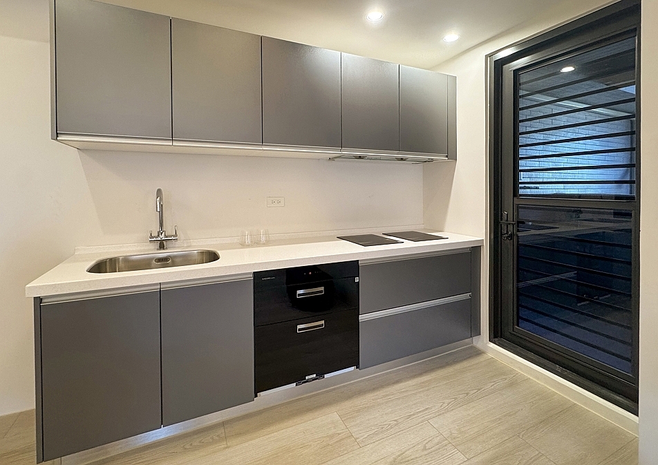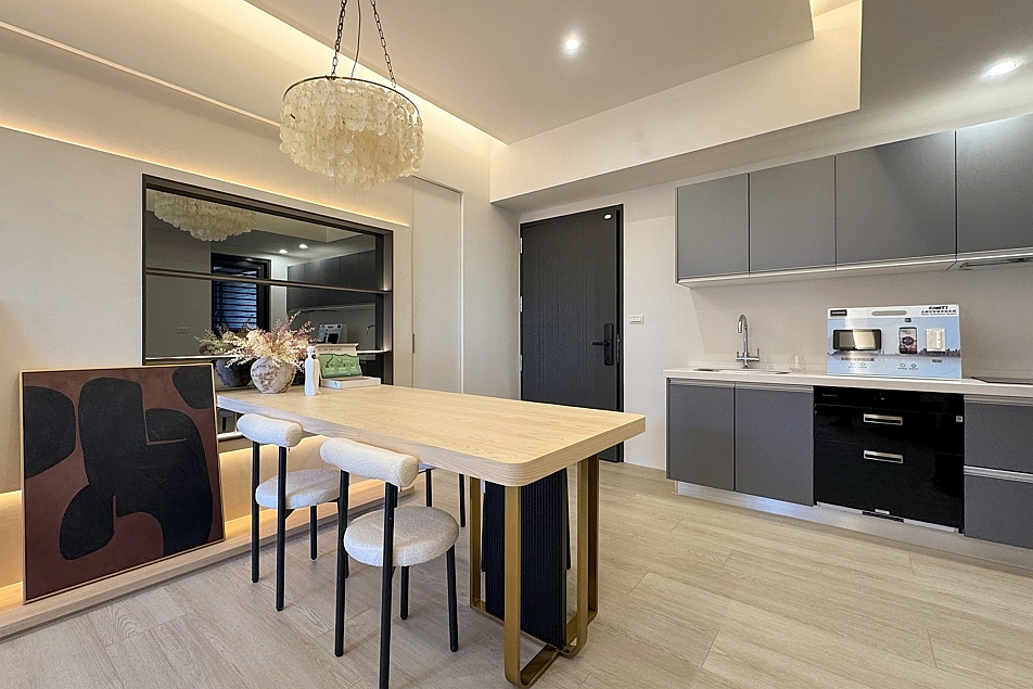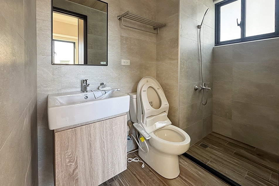 在室內配備上,「叁拾睦」同樣展現對細節的講究。廚房選用櫻花整體造型廚具,配置櫻花排油煙機、IH爐、烘碗機與廚房專用水龍頭;衛浴空間則採用American Standard面盆、龍頭與淋浴龍頭,搭配Panasonic冷暖風機及American Standard電腦免治馬桶座,兼顧機能與舒適。客廳、廚房及臥室全面鋪設德國進口太格超耐磨木地板,門窗則採用大同氣密鋁門窗。