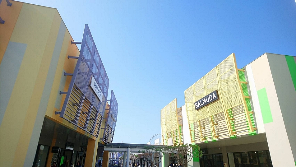 台中港三井OUTLET二期,商場建築外觀色彩繽紛。