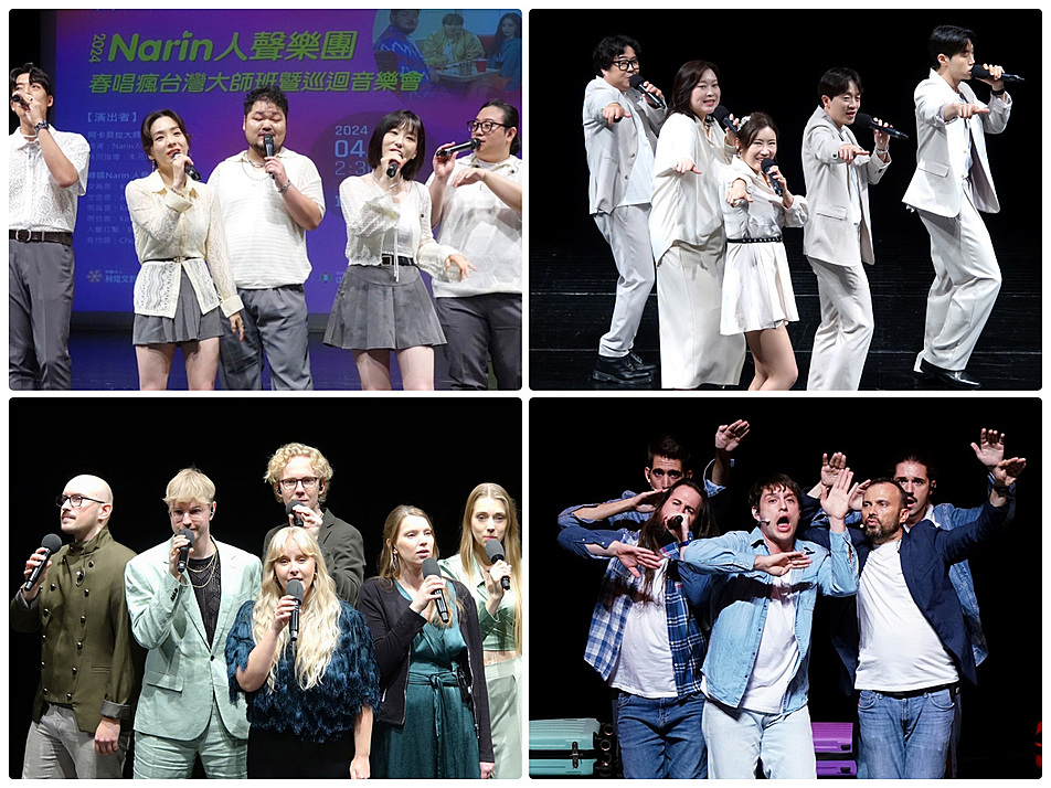 為了讓學員們能拓展國際視野,林孝信文化基金會已陸續邀請過包括韓國超人氣頂尖樂團 Narin(左上)和Zenith(右上),瑞典AORA人聲樂團(左下),以及這次的西班牙 Dimensión Vocal(右下),讓學員能從不同國家、不同風格的專業指導中汲取經驗。