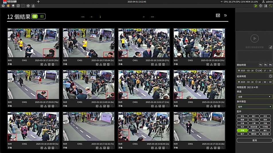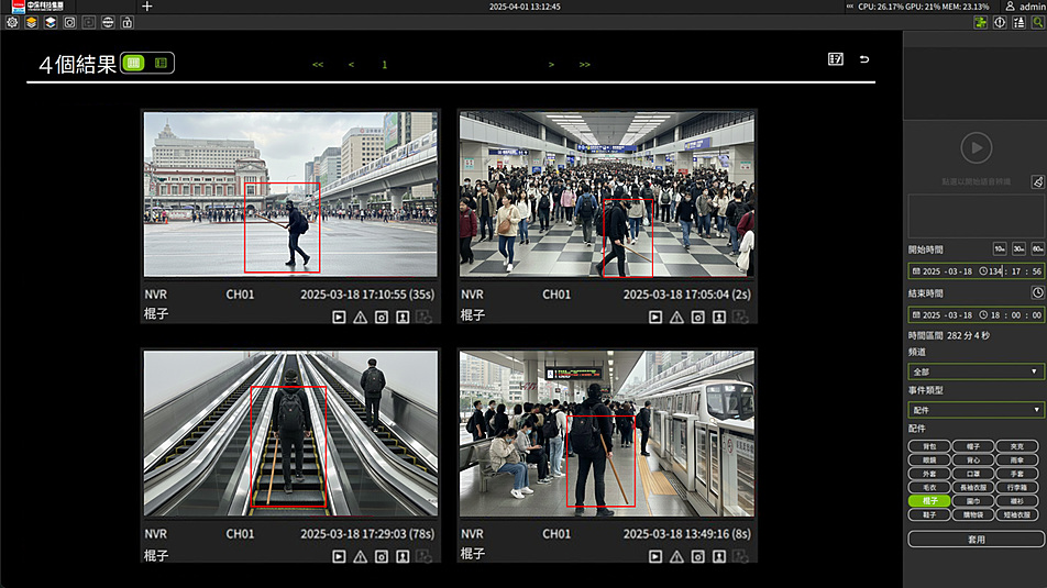 「AI語音影像管理平台」可主動AI辨識特定物件(如危險物品、白帽子、紅背包、黑框眼鏡等),避免人工逐格翻找影像的盲搜困境,協助相關單位在最短時間內,掌握關鍵畫面與行動軌跡,對於後續調查、決策與責任釐清具有高度助益。另一方面,AI事件辨識功能亦可延伸應用於交通事故等異常狀況,主動通報相關人員即時處理,加速應變流程,降低衝擊擴大。