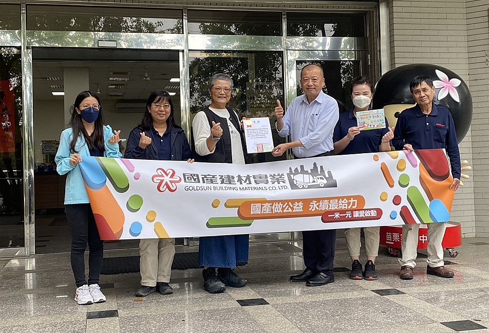 國產建材集團致力於企業永續與ESG發展,重視社會回饋與公益關懷。在集團營運穩健成長之際,從2024年起積極推動「一米一愛心」慈善捐贈與資助計畫,並在北、中、南全台廠區同步落實。所謂「一米一元」,是以各廠區前一年度銷售量為基準,每銷售一立方米混凝土即捐出一元,以過去一年出貨量約650萬立方米計算,年度愛心捐助總額已超過600萬元,善款將用於支持弱勢族群、教育資源及急難救助等公益服務。