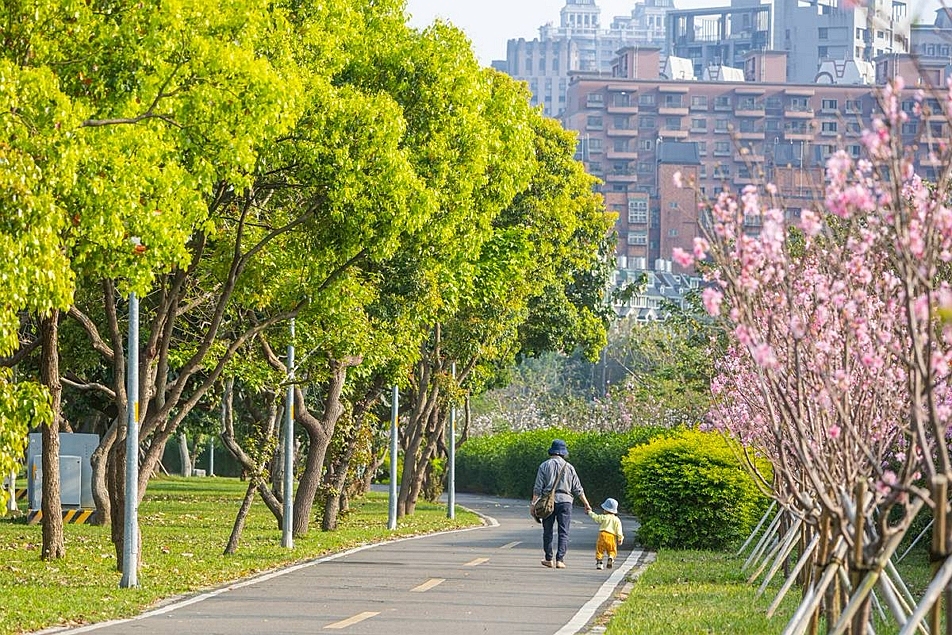 擁有南崁溪自行車道與大型綠地公園,輕鬆擁抱綠意水岸生活。(圖片提供/杭特建設)
