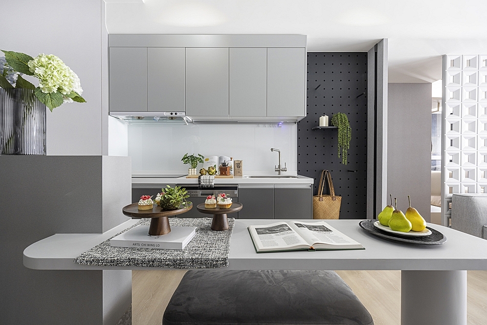 廚房採用櫻花三機與SVAGO半嵌式洗碗機、IH爐具。(圖片提供/杭特建設)