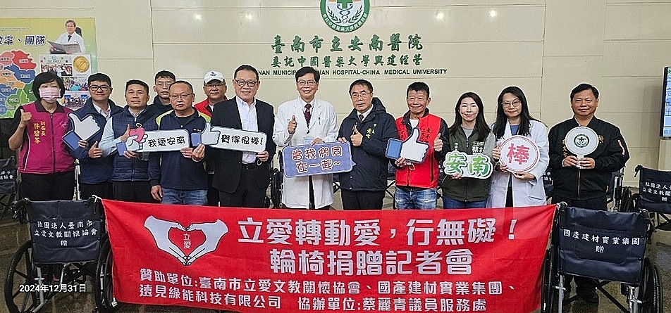 國產台南廠與立愛文教關懷協會,攜手為安南醫院、奇美醫院及成大醫院捐贈數十張輪椅,由台南市市長黃偉哲親自主持捐贈儀式。